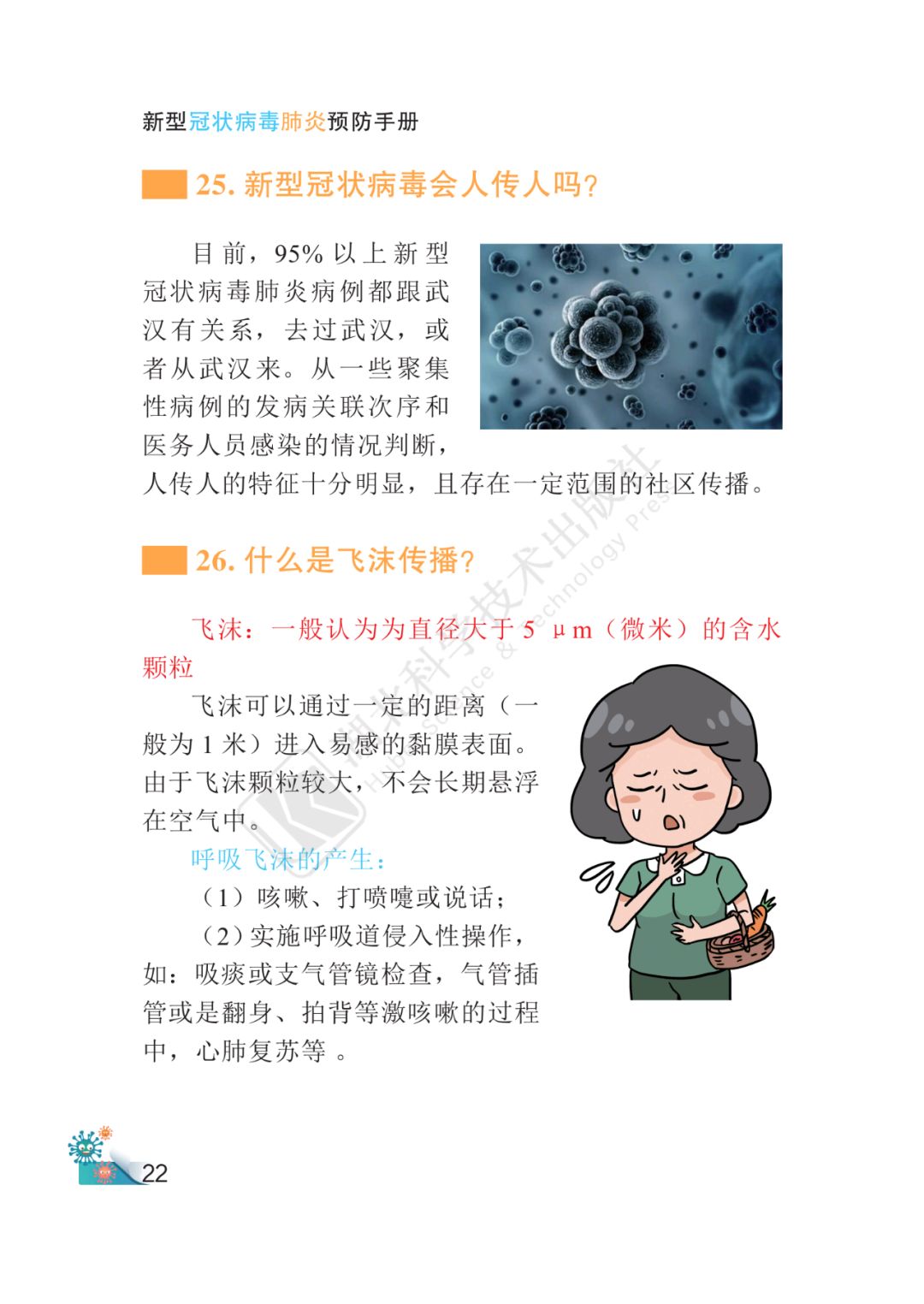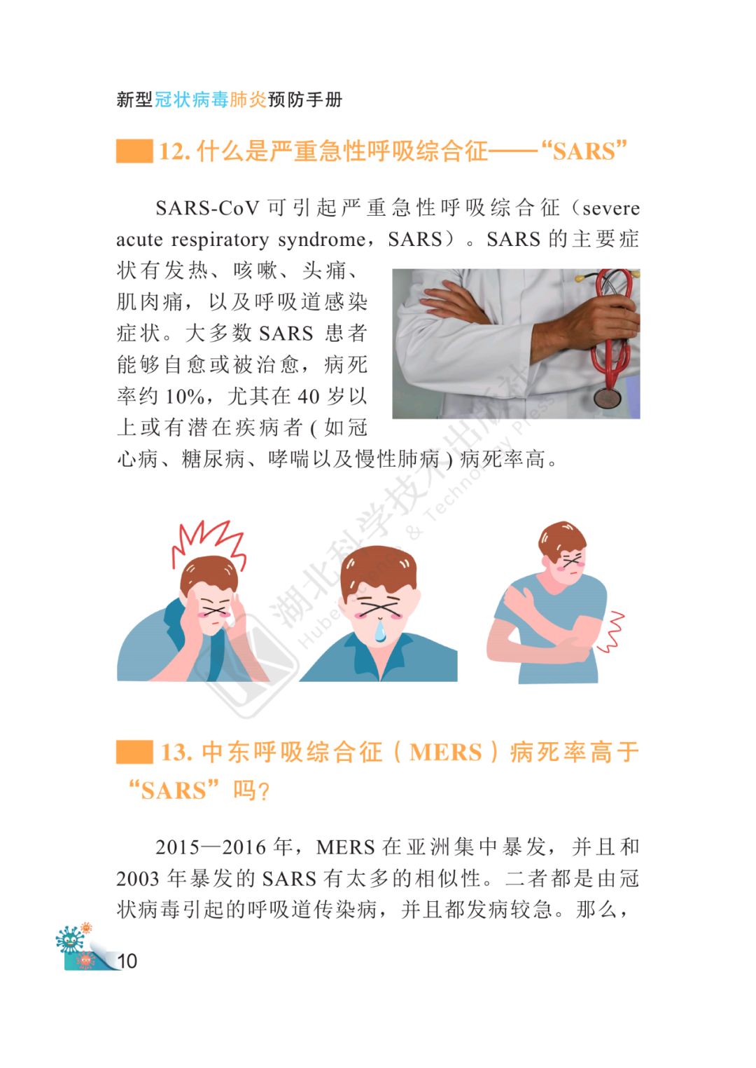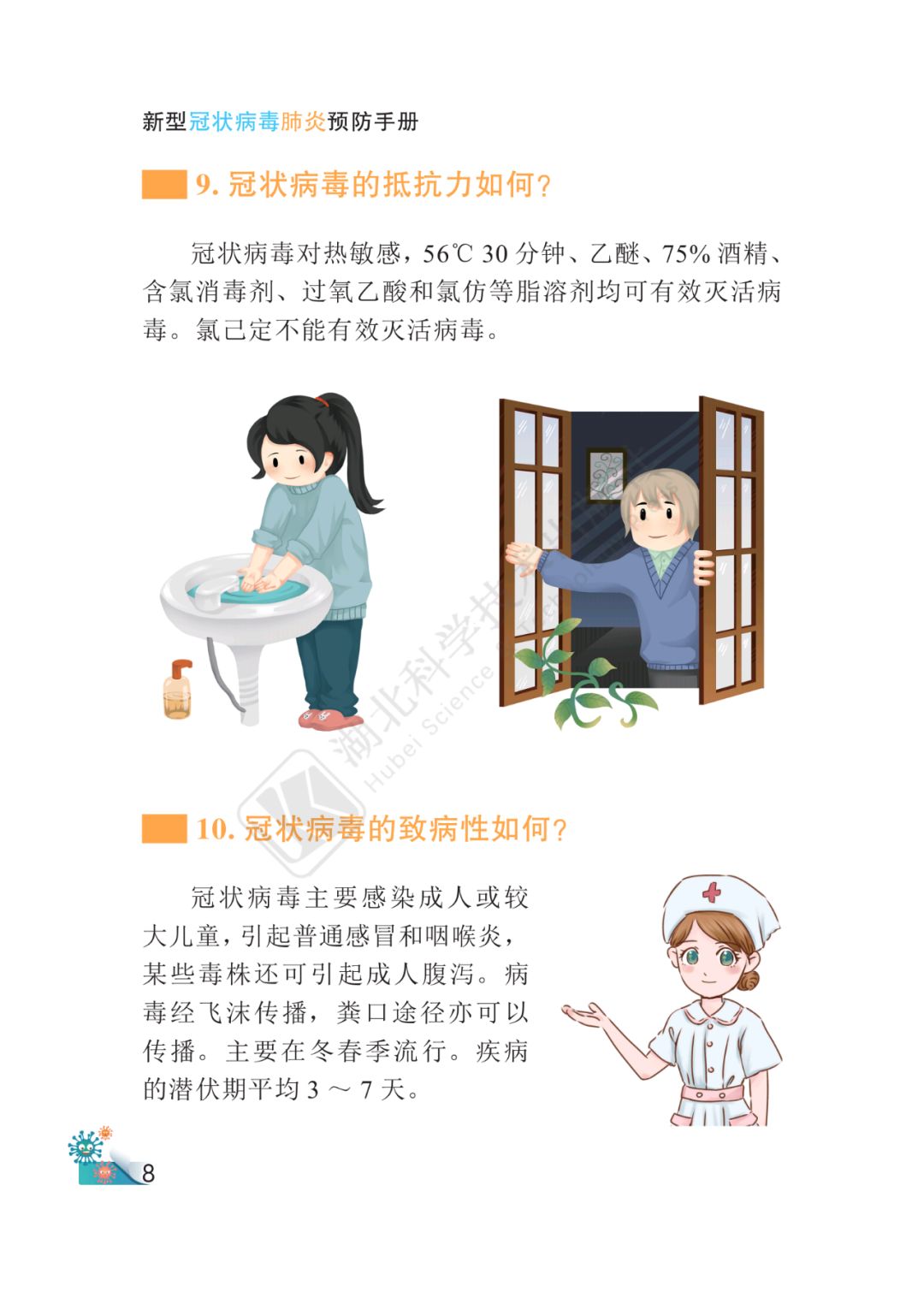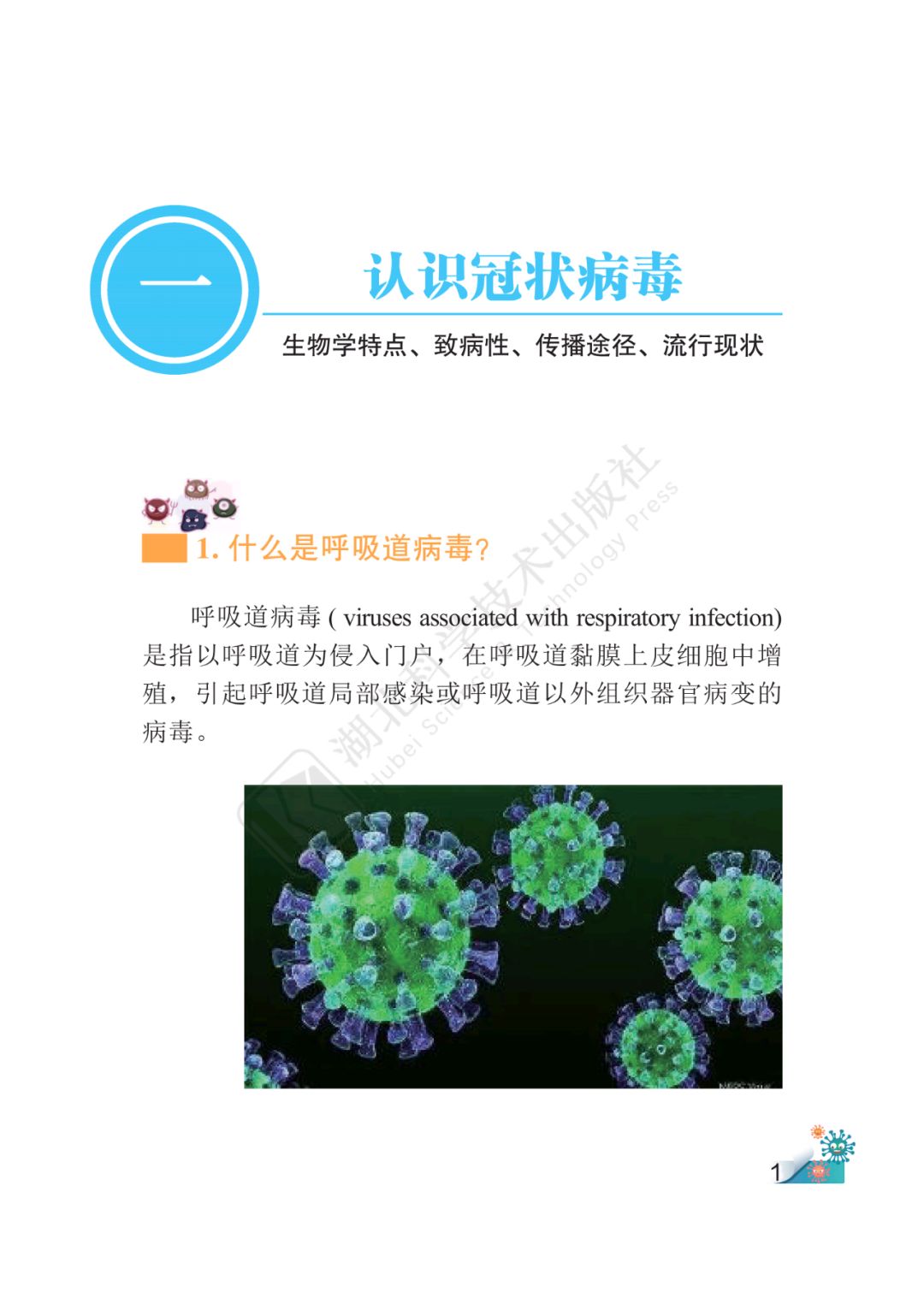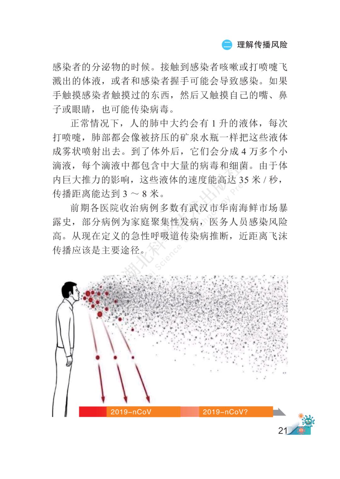“我们向全国读者奉上全书电子版,供大家免费阅读,目的是为了增进大众及有关专业人员对这一新型疾病的认识和理解,指导个人预防,降低传播风险。” 据湖北科学技术出版社社长王力军介绍,该书内容分为认识冠状病毒、理解传播风险、早发现早治疗、个人预防措施、场所卫生要求和传染病相关知识等六部分,以图文并茂、通俗易懂的表达方式,为大众解答在抗击新型冠状病毒肺炎过程中的疑惑。