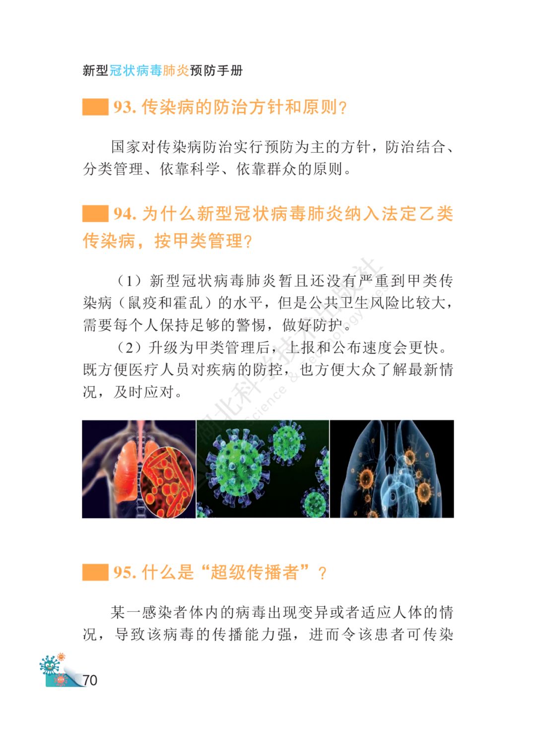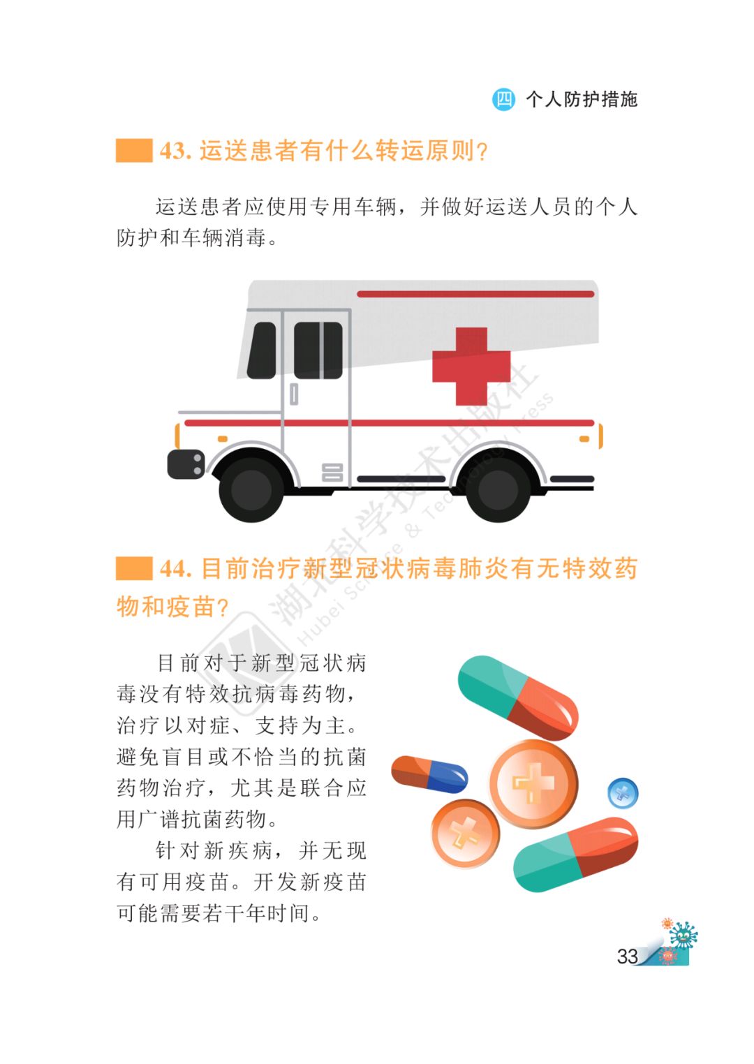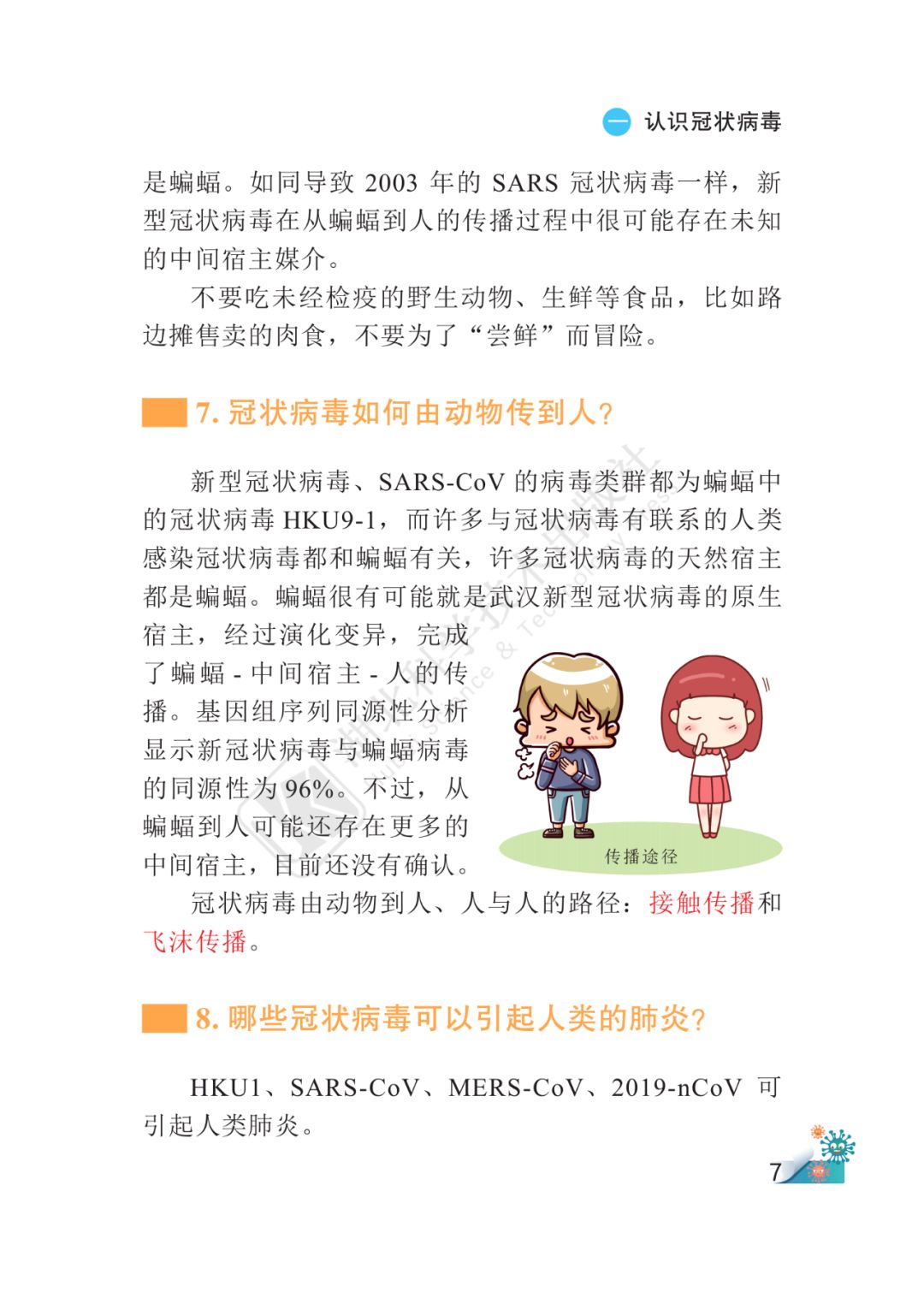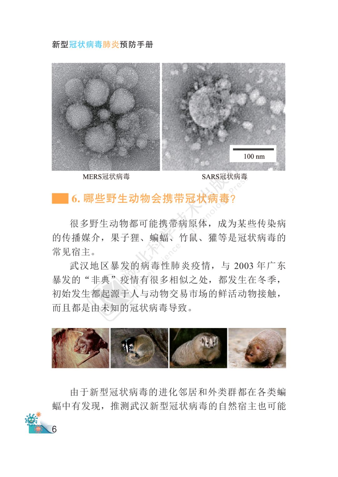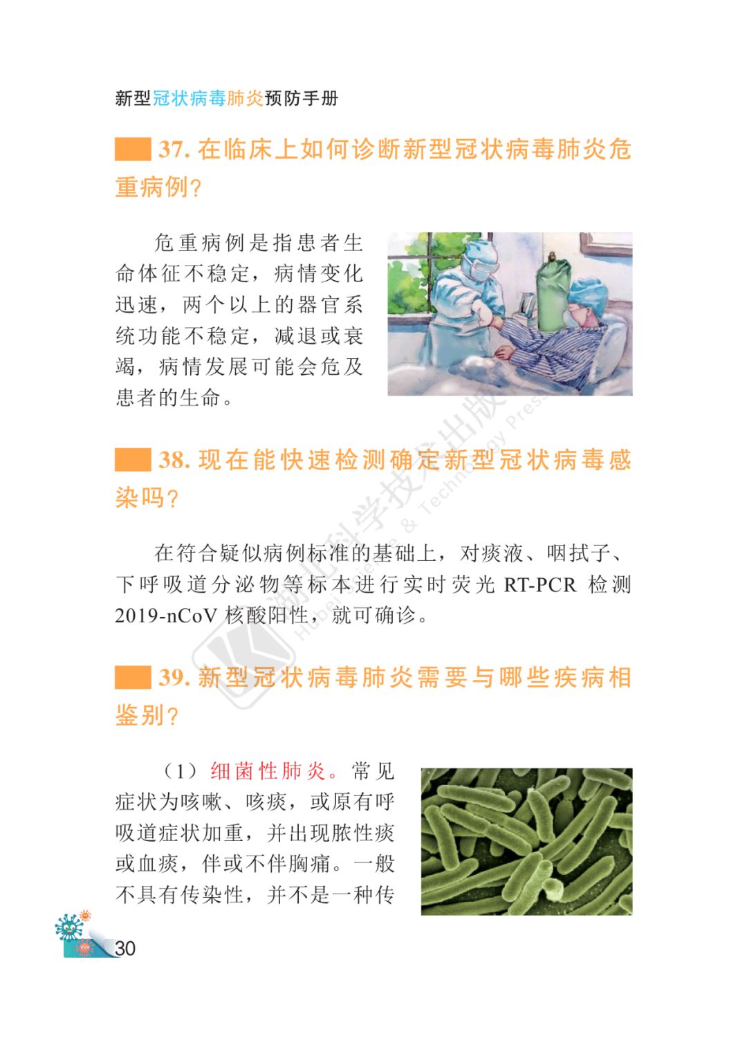 “我们向全国读者奉上全书电子版,供大家免费阅读,目的是为了增进大众及有关专业人员对这一新型疾病的认识和理解,指导个人预防,降低传播风险。” 据湖北科学技术出版社社长王力军介绍,该书内容分为认识冠状病毒、理解传播风险、早发现早治疗、个人预防措施、场所卫生要求和传染病相关知识等六部分,以图文并茂、通俗易懂的表达方式,为大众解答在抗击新型冠状病毒肺炎过程中的疑惑。