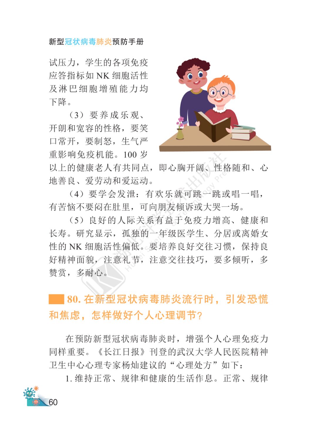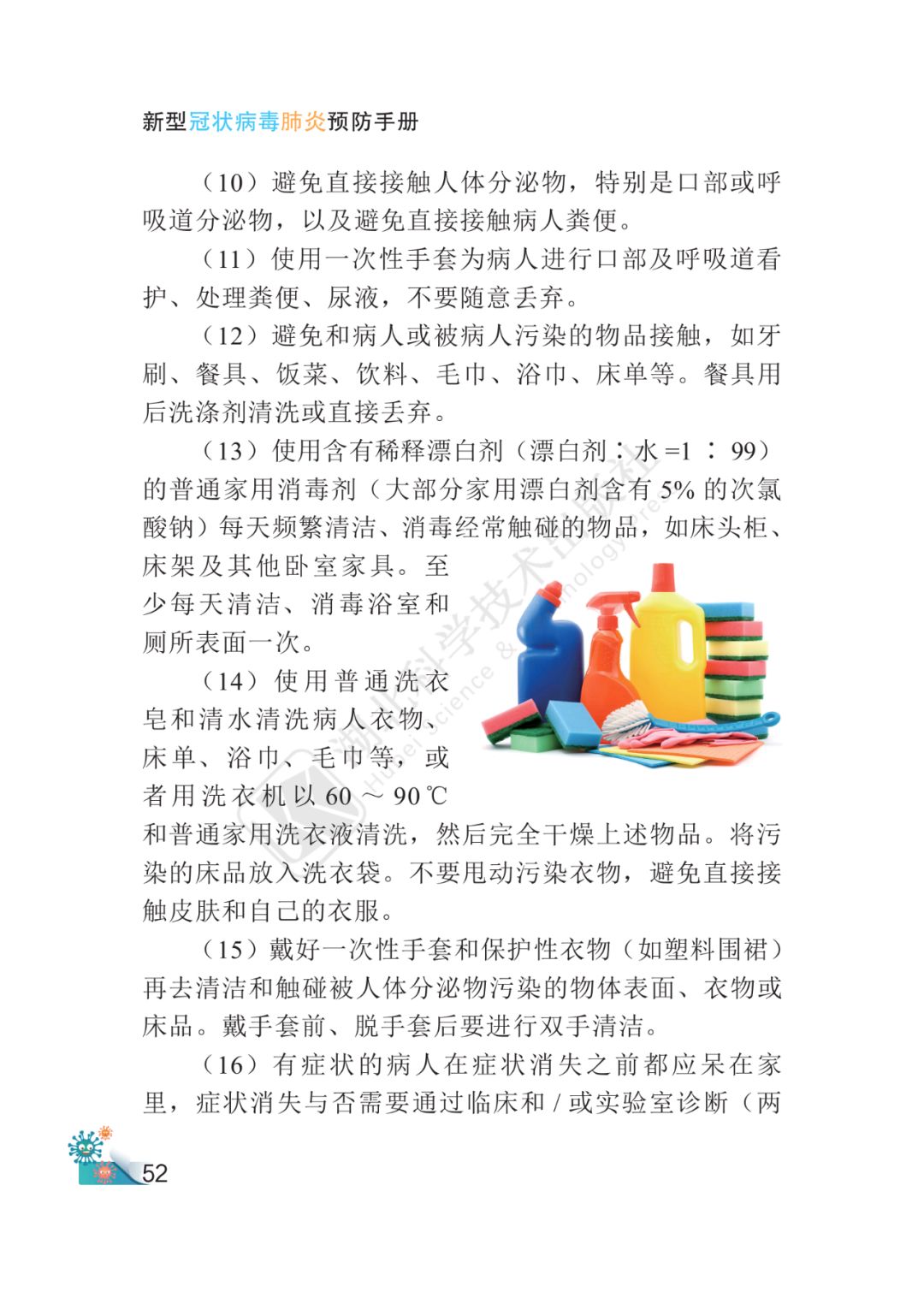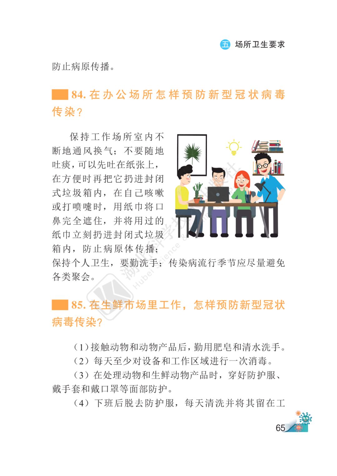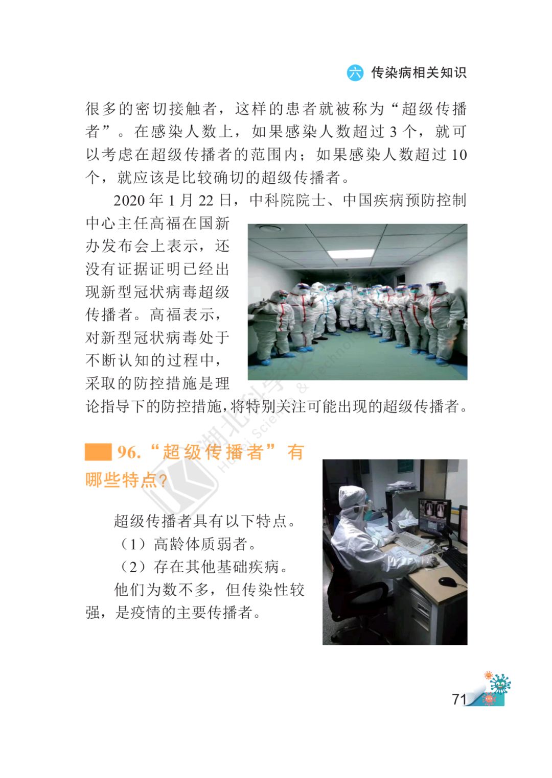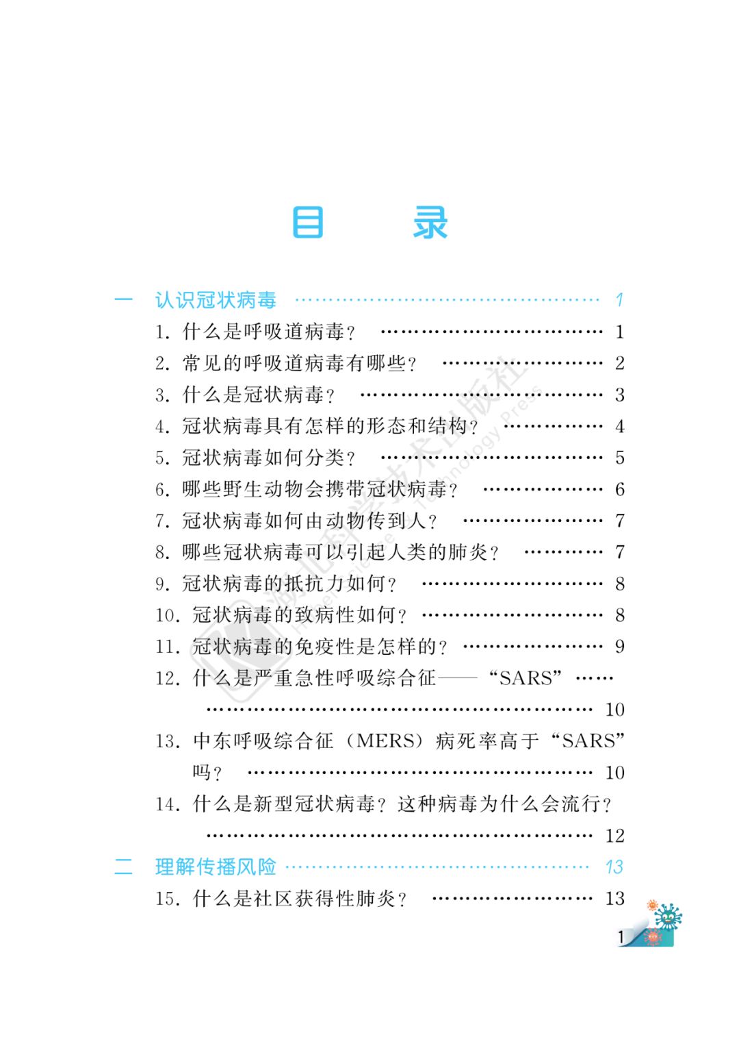 “我们向全国读者奉上全书电子版,供大家免费阅读,目的是为了增进大众及有关专业人员对这一新型疾病的认识和理解,指导个人预防,降低传播风险。” 据湖北科学技术出版社社长王力军介绍,该书内容分为认识冠状病毒、理解传播风险、早发现早治疗、个人预防措施、场所卫生要求和传染病相关知识等六部分,以图文并茂、通俗易懂的表达方式,为大众解答在抗击新型冠状病毒肺炎过程中的疑惑。