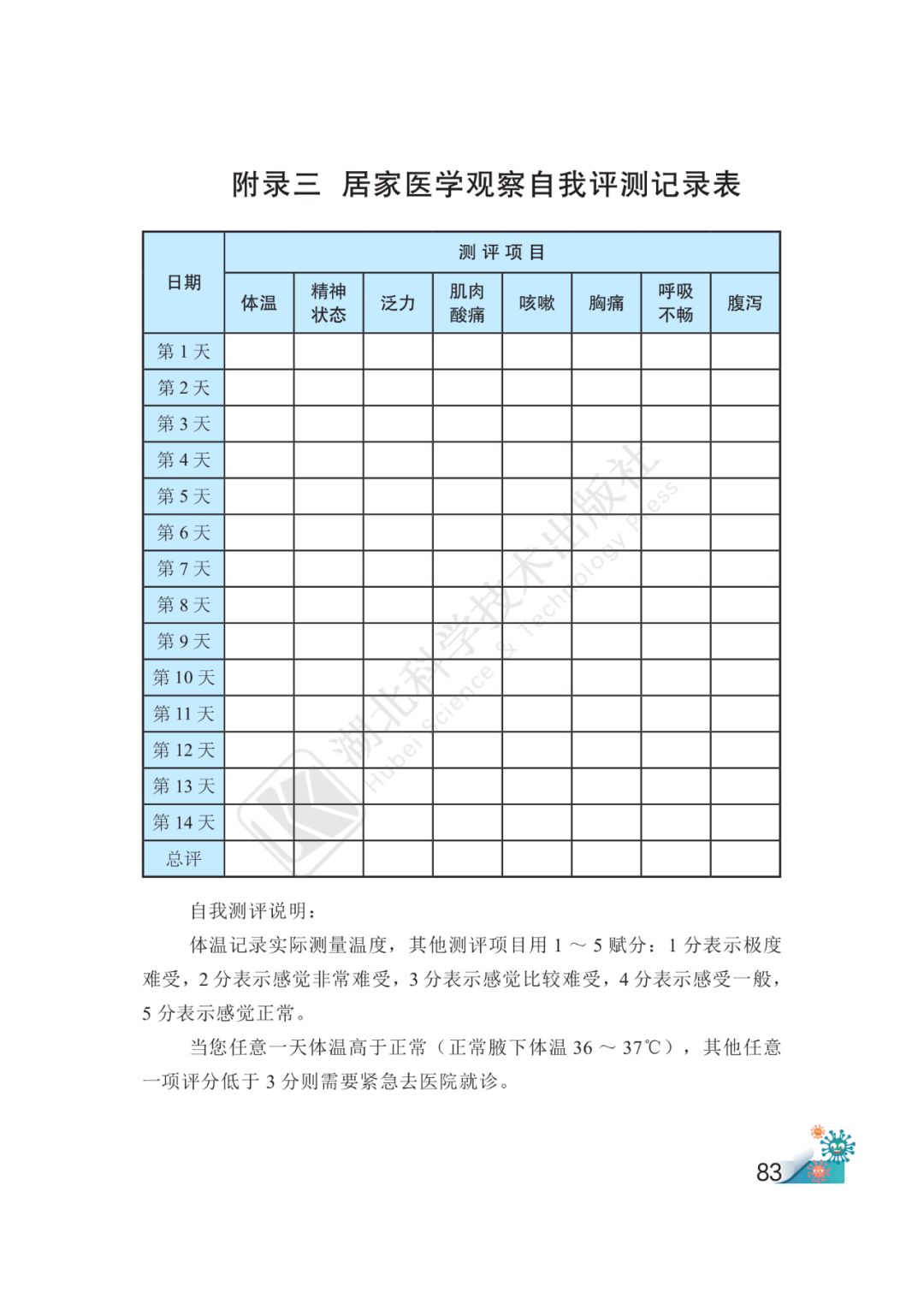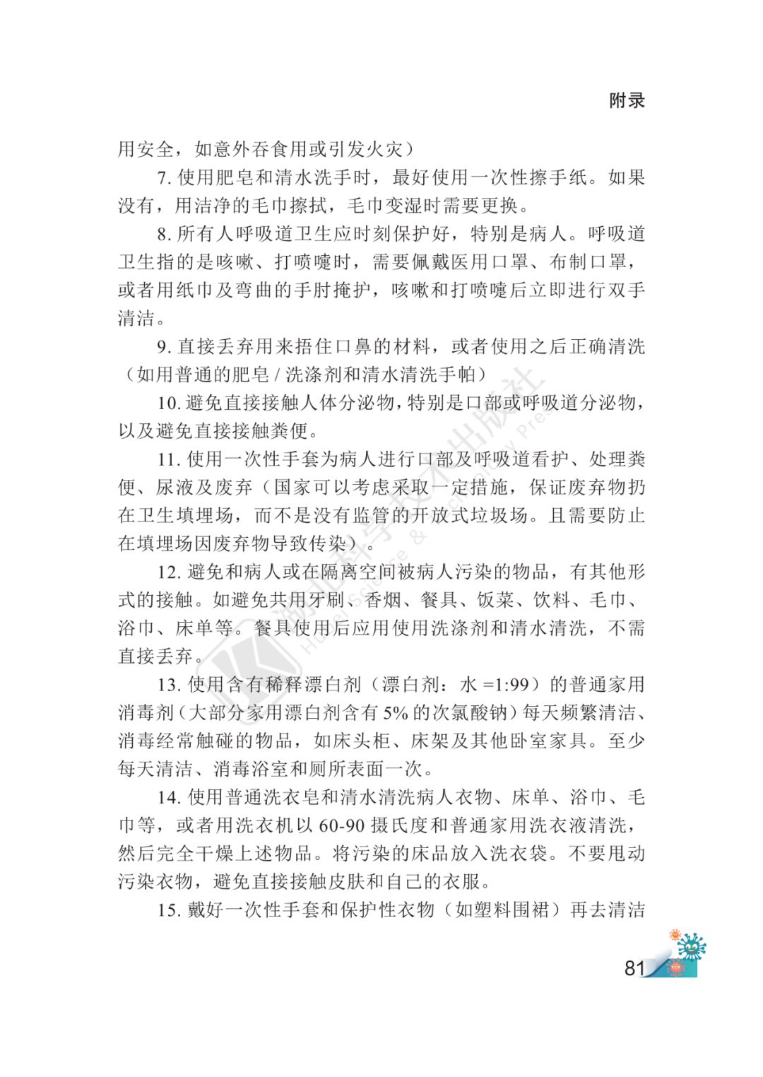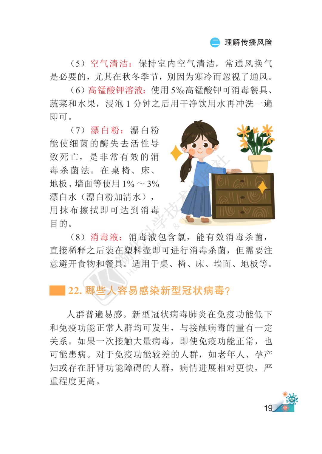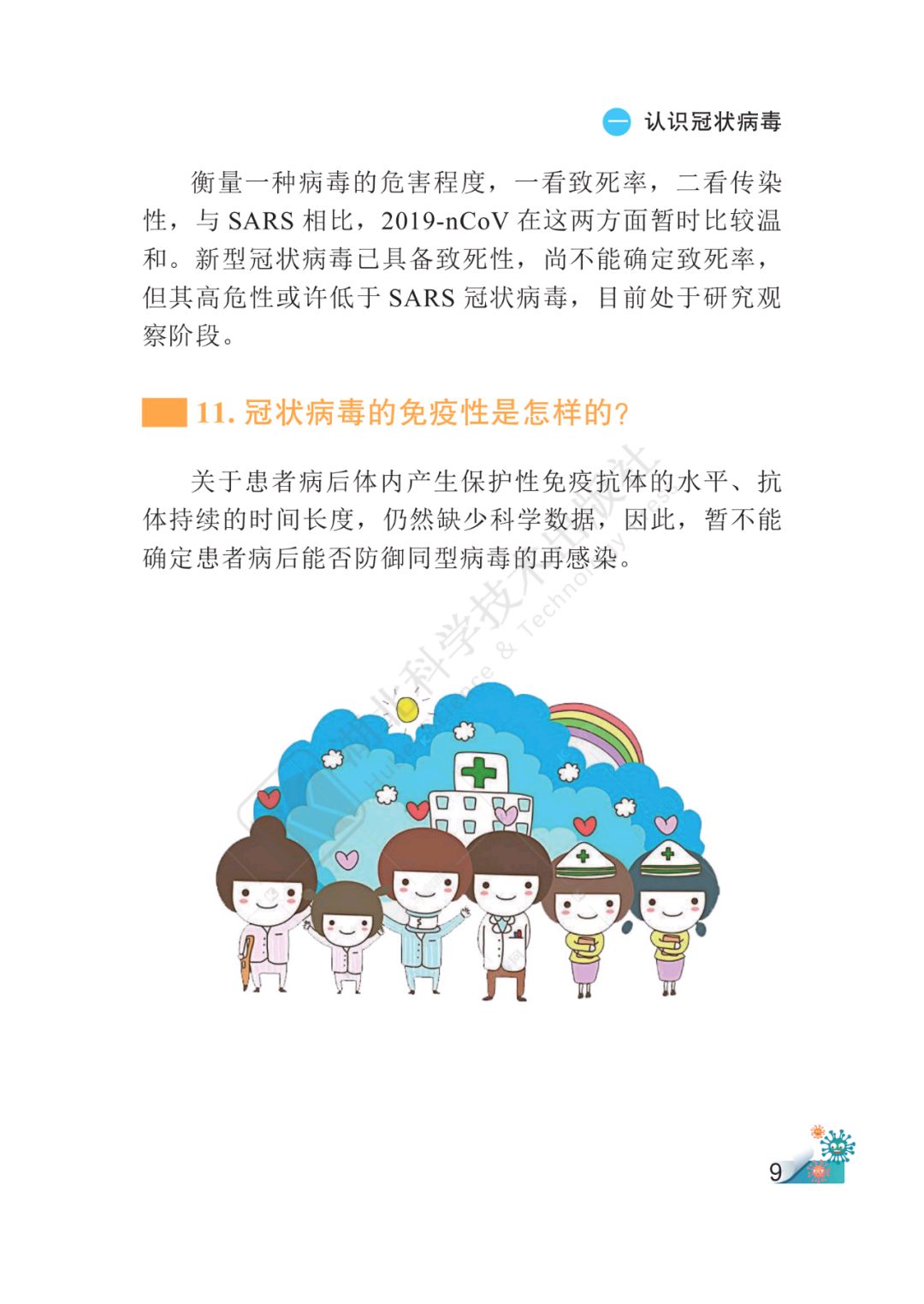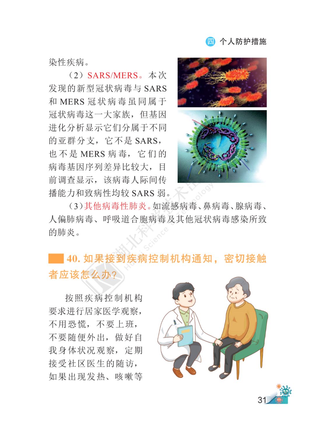 “我们向全国读者奉上全书电子版,供大家免费阅读,目的是为了增进大众及有关专业人员对这一新型疾病的认识和理解,指导个人预防,降低传播风险。” 据湖北科学技术出版社社长王力军介绍,该书内容分为认识冠状病毒、理解传播风险、早发现早治疗、个人预防措施、场所卫生要求和传染病相关知识等六部分,以图文并茂、通俗易懂的表达方式,为大众解答在抗击新型冠状病毒肺炎过程中的疑惑。