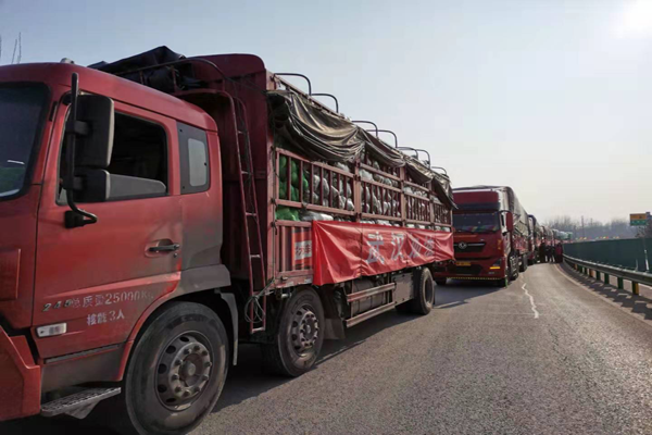1月29日下午,7辆大车满载襄阳宜城人民深情厚谊和200吨新鲜蔬菜从麻安高速宜城南营路口出发,一路向东、奔驰武汉。晚上19:40分,200吨蔬菜安全抵达武汉,转交武汉中商、中百、武商三大商超。30日一大早,武汉市民就能买到来自宜城的新鲜蔬菜。