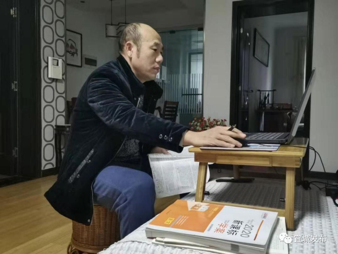 宜城教育系统停课不停学 ,质量不打折。宜城一中隆中名师张海涛在家办公,为学生线上答疑。(邹俊龙)