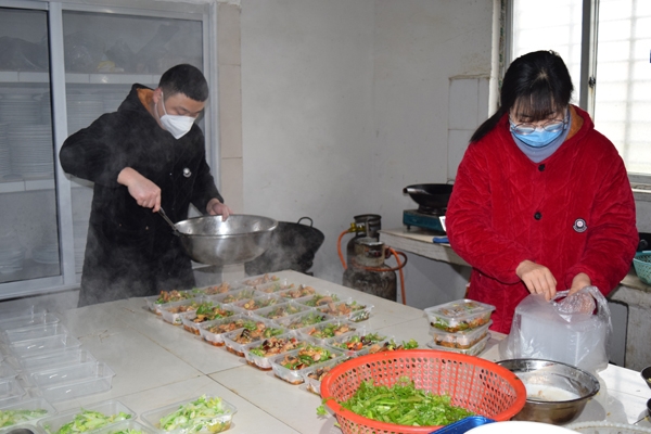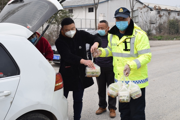 从正月初四开始,贾瑞斌每天为工作人员准备中、晚两餐,每餐两荤一素,各种菜式变着花样来,让他们每天能按时吃上热腾腾的饭菜。贾瑞斌表示:“看见平常各个路口、各个工作人员放弃节假日,我们还在家休息他们却在外面执勤,觉得他们非常伟大、辛苦,刚好我们过年的时候也储备了一些食材,这几天我们免费做好之后给工作人员送过去,也算是为抗击疫情尽点自己的力量,同时也向奋战在一线的工作人员表示感谢。”