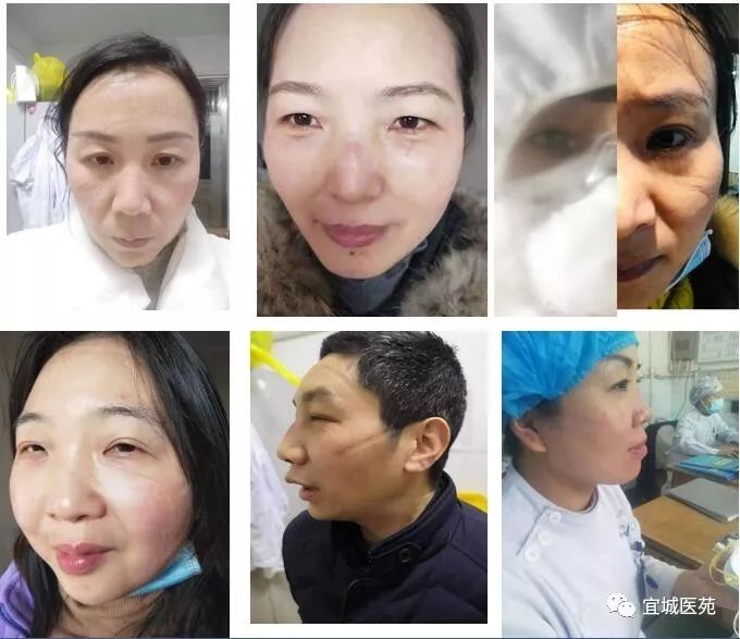 看着一张张我们熟悉的面孔,平日里帅气漂亮的他们,因为连续多个小时穿着厚重的防护服、戴着口罩和护目镜,等下班脱掉装备,磨出的水泡、压红的鼻梁,勒红的耳朵、泡皱的双手,十几个小时过去依然无法消退,他们不是不爱美,不是不再乎,是因为治疗护理患者太投入,无法顾忌到自己的疼痛,在解除患者的痛苦时浑然忘我,在对抗疫情时勇往直前!为了做好预检分诊、留观患者的病情观察、心理疏导,还有门诊、留观室的消毒隔离工作,同事们加班加点,为了节约穿脱防护服的时间,不喝水、不去卫生间成了大家公认的办法。走出缓冲间,踏进污染区,工作时间是以十小时以上计算的,遇上患者多,午饭要到下午两三点才能吃到是常态。
