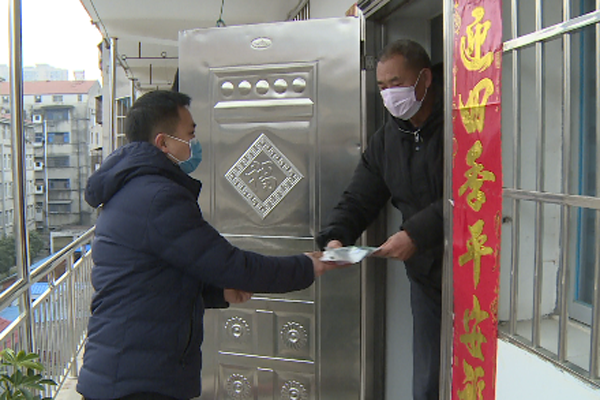 2月2日,宜城市组建的以党员、干部、志愿者为主题的“红色暖心服务队”陆续上门为全市各小区的汉返人员送去爱心护理包。