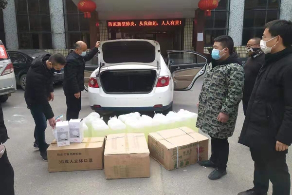 2月3日,南营办事处官庄豆豆超市将采购的500斤84消毒液、270个N95口罩、2400双一次性手套、60个喷壶捐赠到南营办事处,用实际行动支援家乡疫情防控。