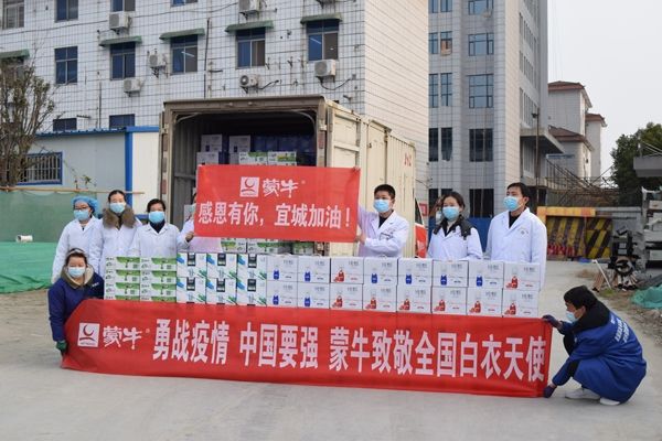 2月3日,玉瀚商贸有限公司向市人民医院捐赠1100件价值7万多元的蒙牛牛奶,向舍小家为大家、始终把人民群众生命安全和身体健康放在第一位的医护人员表示感谢,助力宜城抗击新型冠状病毒感染的肺炎疫情。(李明磊)