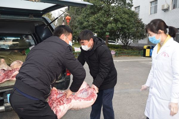 2月3日,小河镇雨林家庭农场负责人将刚刚屠宰的3头肥猪送到小河镇中心卫生院、小河镇政府等地,慰问奋战在抗疫一线的工作者。