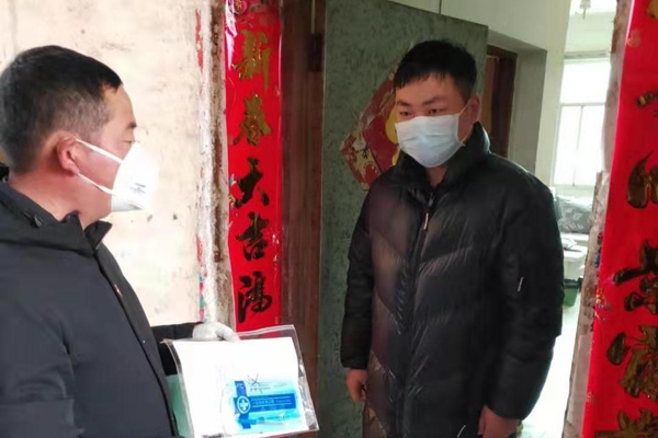 2月2日,南营办事处官庄中学“红色暖心服务小分队”登门看望武汉返宜人员,并送去防护手册、体温计、口罩等“四个一”活动相关物资。(毛先锋)