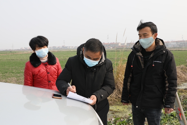2月3日,鄢城办事处铁湖村二组组长阮榜忠妻子李广娥,自发参与疫情防控,夫妻两人并肩守卫铁湖村二组。(李勤 易振波)