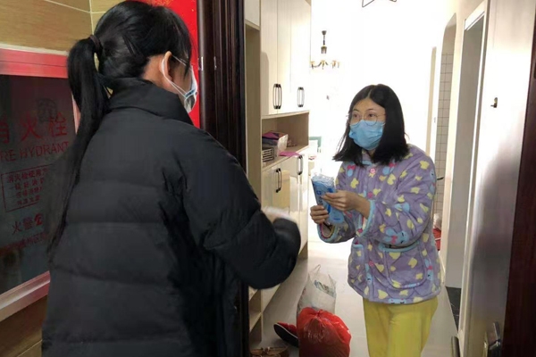 康桥小区有位从武汉返宜人员在居家隔离6天后生活出现困难。她用微信联系杨帆,询问能不能自己出来采购生活用品。杨帆赶紧劝说她一定要居家隔离14天,如果有什么需要由她帮助采购后送上门来。最后,杨帆帮她在窑湾的亲戚家中取了生活用品,又跑到药店买了口罩送到她家门口,令业主十分感动。
