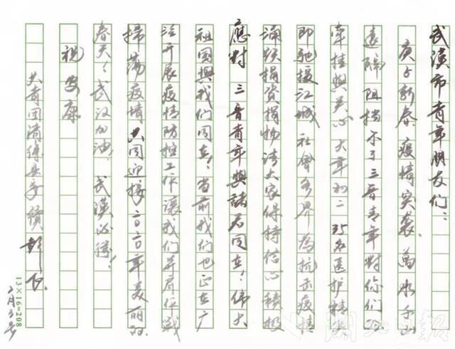 “希望如约而至的不只是春天,还有疫情过后平安的你。”共青团太原市委开展手写信祝福武汉活动,广大青年纷纷笔尖传情,山西警察学院19级学生徐佳写信表达期盼。