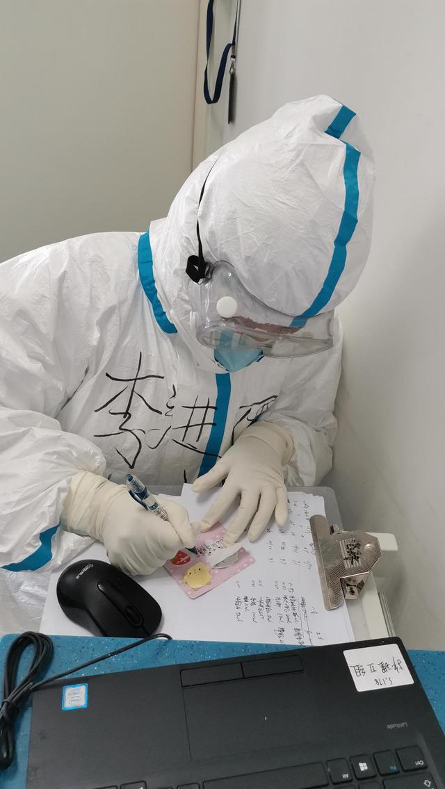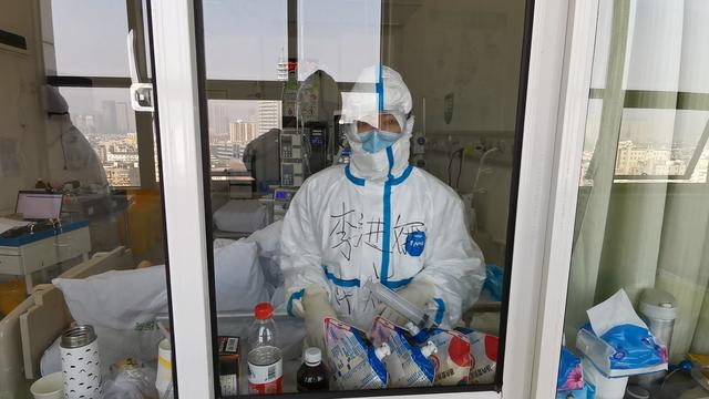 从病房出来,取下护目镜,李波医生眯着眼睛喊护士长,他需要一块消毒湿巾擦擦眼睛。"一进去就是三个小时,有时候时间会更长一些。护目镜经过消毒液泡过以后,还是带有消毒液的那个刺激性,流眼泪,然后鼻涕也会不停地流,时间久了就必须要出来更换。"