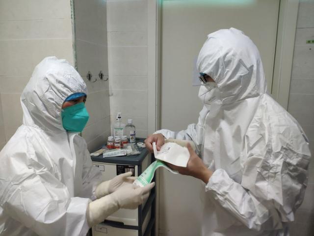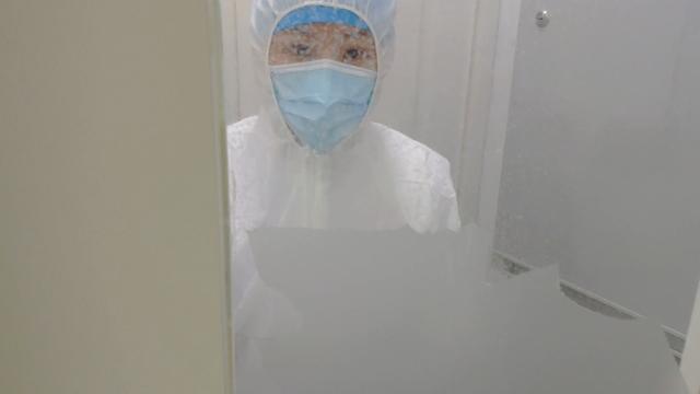 "我们潜在污染区和污染区之间有一个缓冲间,在里面脱掉一层防护服或者脱掉一层手套,相对来说还是存在一定风险的,所以我们都会督促护士,操作完以后就尽快离开这个环境。"