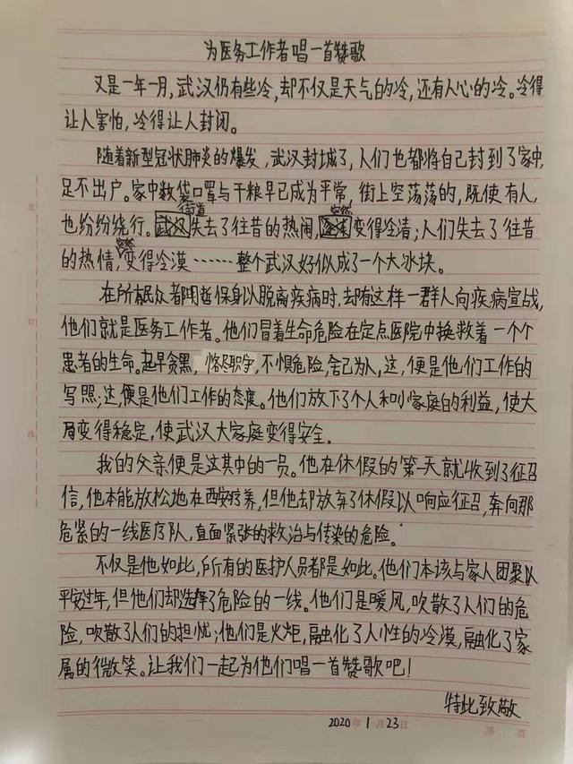 进驻ICU的前两天,邬明和家人到达西安,准备开始四年来的第一次休假。但是,还没来得及打开行囊,邬明就接到了带队支援的通知,他立即中断行程,赶回武汉。这一幕,仍在陕西隔离的儿子在作文中写到:"他们是暖风,吹散了人们的危险,吹散了人们的担忧"。