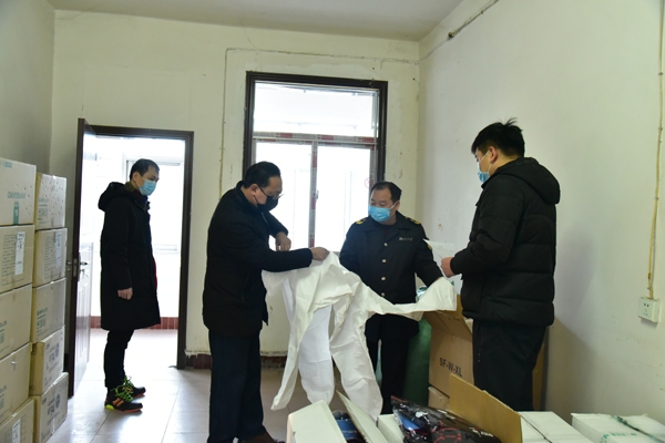 2月5日,市场监督管理局工作人员正在对捐赠和采购的医疗物资进行现场查验,判定能否用于医疗机构。这一措施有效防止了假冒伪劣产品流入医疗机构。(钟军)