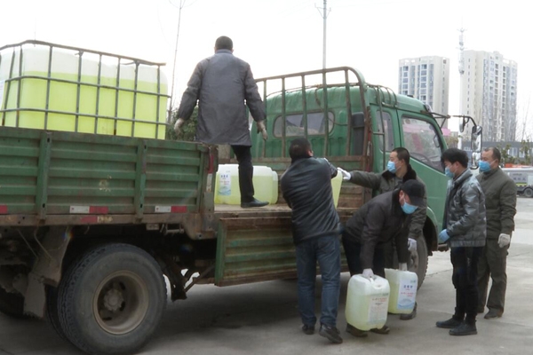 2月7日,工商联在荆门一化工公司筹措2吨消毒液,捐赠给市新型冠状病毒感染肺炎疫情防控指挥部,用实际行动表达了对疫情防控工作的支持。(向杰廷)