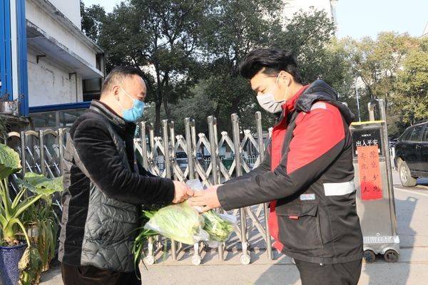 老维管所小区居民刘朝阳从友人生活超市接过蔬菜时说,“微信订单真方便,足不出户就把菜买到手了,减少了疫情传染的风险,购物方便又