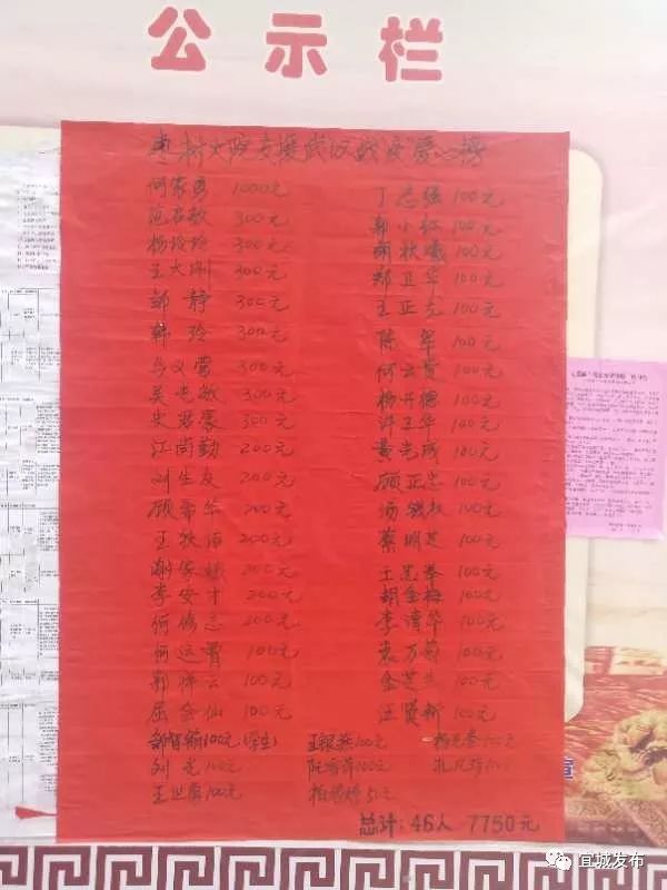 截止发稿时,红艳艳的爱心榜上46人共捐款7750元。