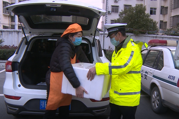 2月10日7点30分,蒸馍坊店主曾宪琴把分装好的55份爱心早餐免费送到了交警大队,然后由工作人员分送给沿途值勤点的交警。据悉,她将一直送到交通管制结束为止。(谢丛阳)
