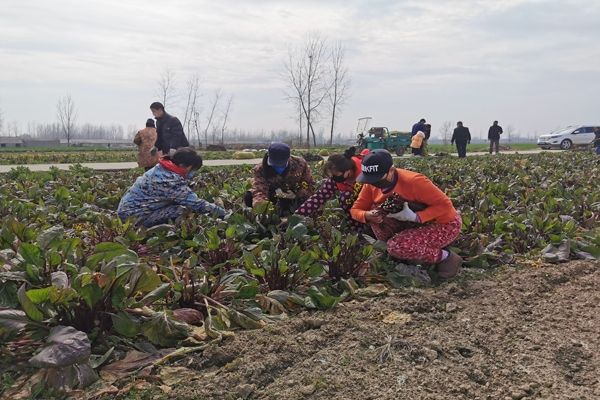 2月10日下午,位于鄢城办事处南河村12组的三户村民还没来得及吃上饭,就在菜地里忙碌,一包包现摘的新鲜蔬菜,由鄢城办事处派车运走,统一分发到需要的社区。