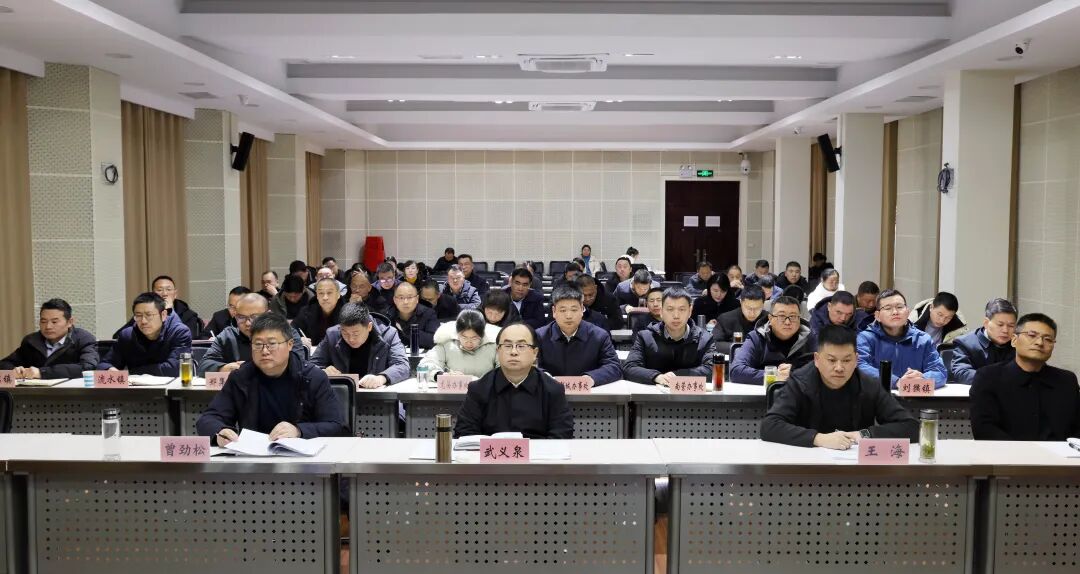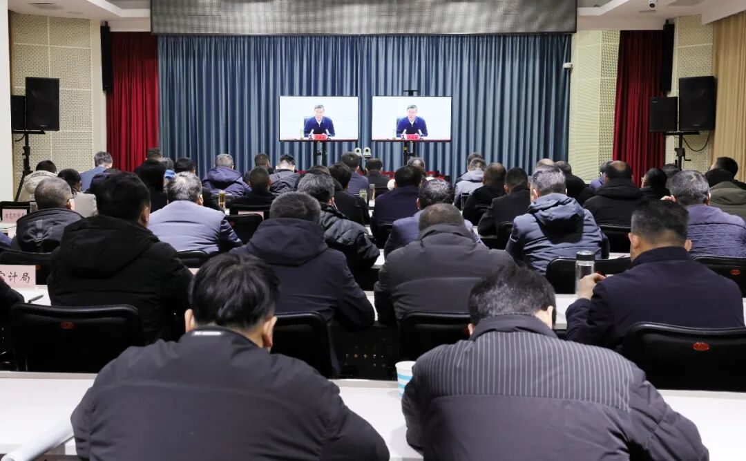 宜城市委书记武义泉,市领导王海、曾劲松、杨海涛、沈杰等在宜城分会场参加会议。