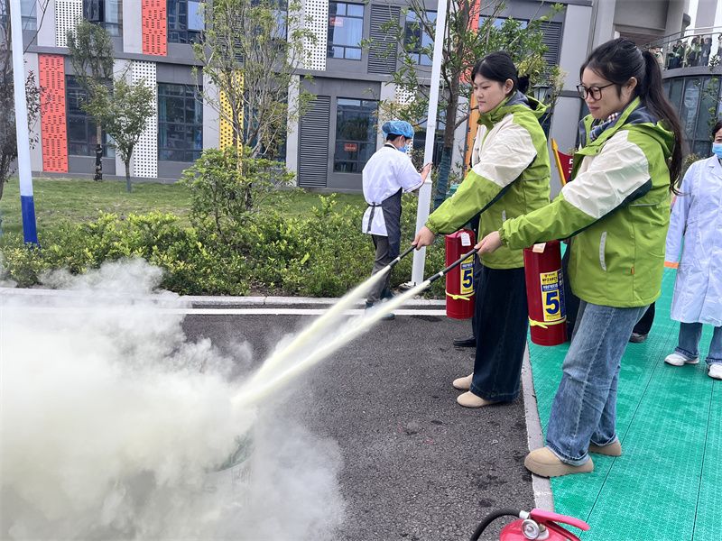 演练尾声,该幼儿园针对新进教师和食堂工作人员开展消防器材使用专项培训。安保队长现场演示了灭火器“提、拔、握、压”的操作流程,并讲解关键要点。参训人员逐一练习了消防栓开启、水带连接及灭火器使用,确保在突发情况下能够熟练应对,为校园安全筑牢“成人防护网”。