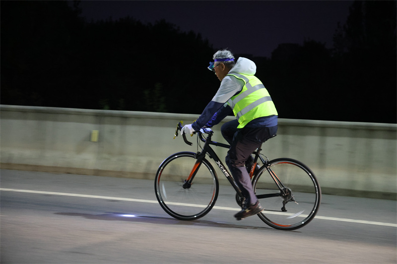 级丈量员袁林标定300米路线此次赛道丈量工作,采用“标定自行车丈量法”,以配备“琼斯测量仪”(世界田联审核专用计数器)的前轮细轴快拆公路赛车为核心工具,通过计数器记录自行车前轴转动圈数,结合预设换算系数实时计算赛道长度,确保每一公里数据可追溯、可验证,且其骑行轨迹必须尽可能模仿出运动员实际跑步的轨迹,确保测量路径与选手在比赛中的真实跑动路线高度相似。