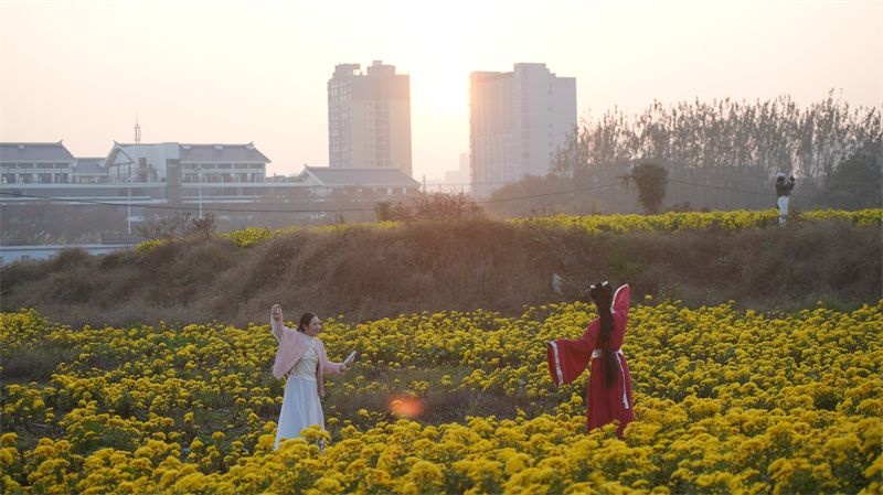 记者陈飞 李锋 钟军 通讯员彭德芬报道:金秋时节,宜城市汉江两岸的3000余亩菊花迎来盛花期。金丝皇菊、婺源皇菊等品种竞相绽放,连绵的花海如金色织锦,吸引众多游客前来观赏“打卡”,也为当地村民铺就了一条绚丽的增收致富路。