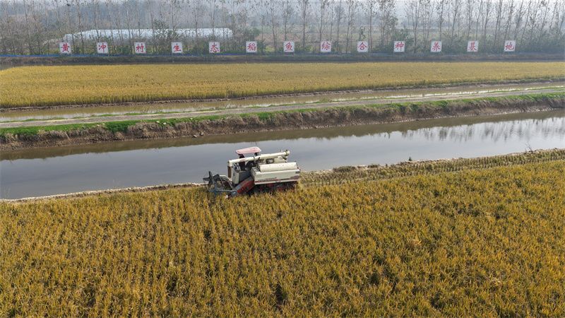 水稻机进行收割作业