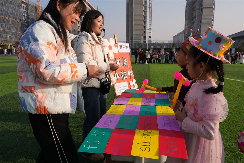 记者周波 通讯员王影报道:12月5日,鲤鱼湖中学操场上热闹非凡,一场别开生面的“拼音王国奇妙游”主题游园活动在此举行。该校小学部一年级全体学生通过一系列创意闯关游戏,在趣味实践中巩固拼音知识,提升语文核心素养,生动诠释“生活即教育,体验即成长”的育人理念。