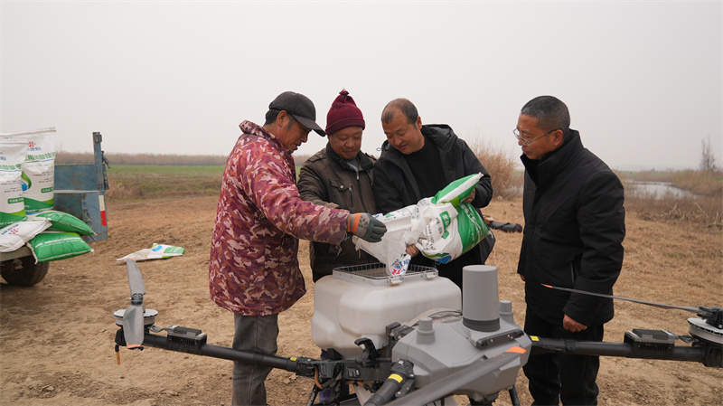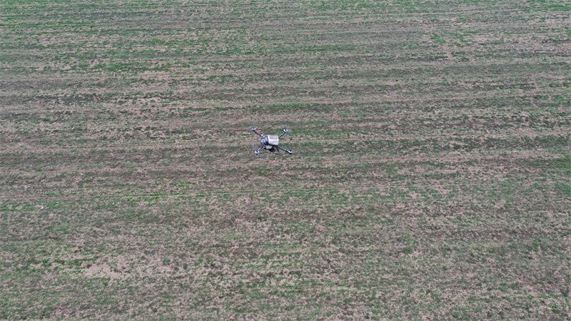 除了细致的田间指导,科技手段也为这场风雪前的农业生产“保卫战”提供有力支撑。在部分田块上空,植保无人机正按预设航线平稳飞行,进行叶面肥或抗逆调节剂的精准喷洒。“无人机作业效率高,能赶在雨雪前落实好补肥和防冻措施,对我们这种种植1400多亩油菜的家庭农场来说,非常及时!”流水镇迎硕种植家庭农场负责人张林表示。这种“空中+地面”相结合的立体作业模式,显著提升田管效率和精准性。