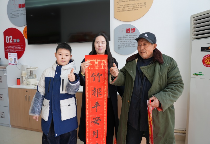 活动现场气氛热烈,闻讯而来的居民络绎不绝。社区居民章大爷拿着刚“出炉”的春联赞不绝口:“这些孩子写得真好!比买的印刷春联更有年味、更有温度。看着孩子们这么用心为我们写春联,心里特别温暖,这才是过年的感觉!”