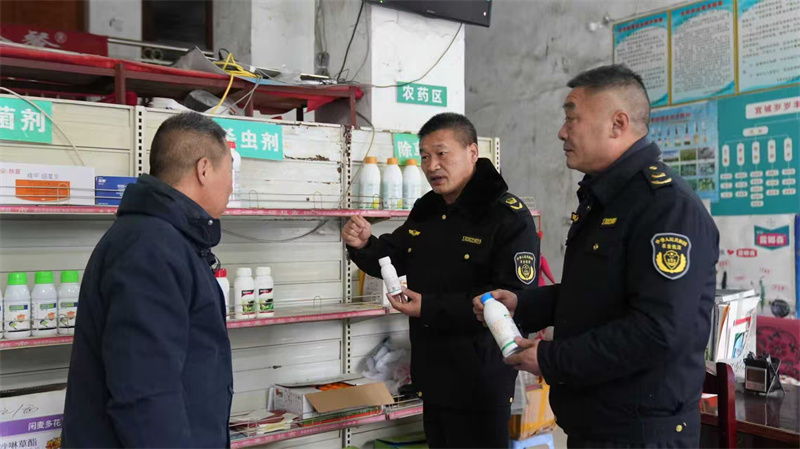 农资经营是此次检查的关键一环。在城区一家农资店内,执法人员仔细核对农药、兽药、化肥等产品的登记证号、标签标识及经营台账,严防假冒伪劣农资流入市场。该店负责人张兴发现场郑重承诺:“不卖过期药,不卖添加隐性成分的农药,不卖高毒和禁限农药,不超范围使用农药。”他坦言,“执法人员来检查指导,对我们既是监督也是促进。”