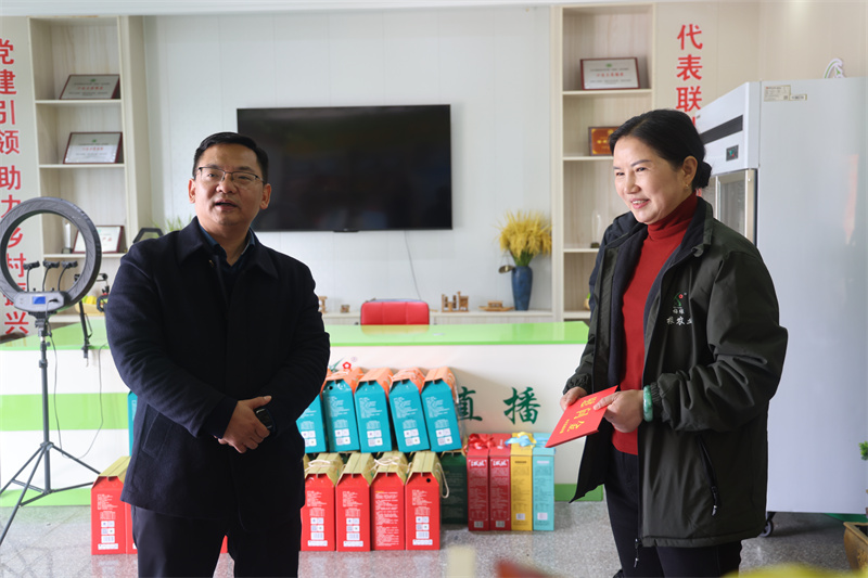 慰问中,朱晓林详细询问方雪梅工作和生活情况,了解公司经营管理现状,高度评价其长期以来深耕“三农”领域、扎根基层一线的奋斗精神。他对梅缘农资在推广优质农产品、为农户提供物美价廉农资等方面所做的贡献表示衷心感谢,并勉励方雪梅继续坚守为农服务初心,更好服务农民朋友和农业生产,为宜城经济社会高质量发展贡献更多“三农”力量。