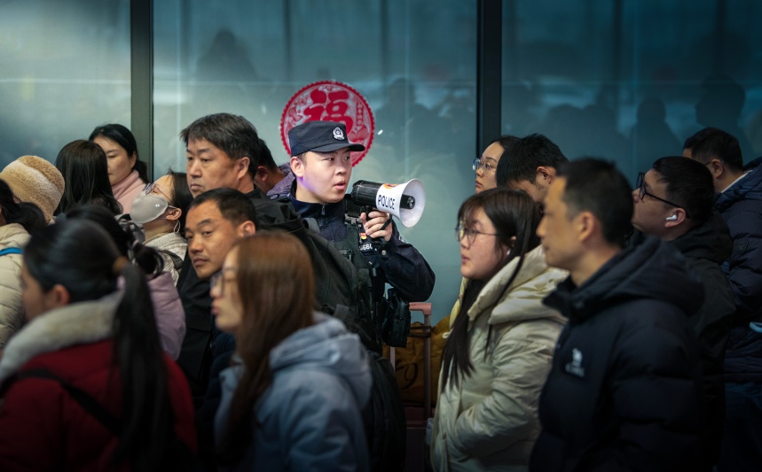 “请大家排好队,提前准备好身份证。”“带小孩的旅客请牵好孩子,注意脚下安全。”在检票口和扶梯处,执勤民警手持小喇叭,反复提示、耐心引导,用一次次叮咛筑牢安全防线。