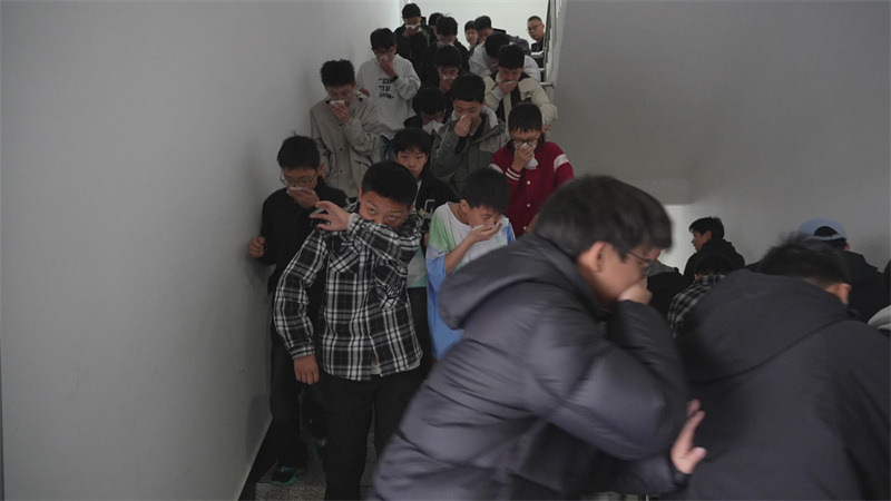 上午9时,随着校园内尖锐的消防警报声响起,演练拉开帷幕。模拟烟雾迅速在学生宿舍楼内弥漫,鲤鱼湖中学的同学们在老师的指引下,用湿毛巾捂住口鼻,弯腰低姿,沿着预定的疏散路线,迅速而有序地向操场安全地带撤离。整个过程紧张有序,从警报响起到全员集合完毕,仅用时3分钟左右。