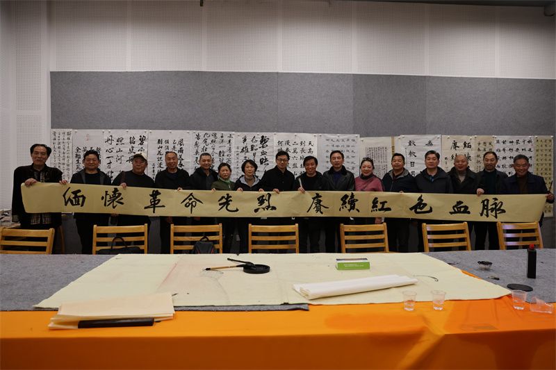 值得一提的是,12位书法家现场联袂挥毫,共同书写“缅怀革命先烈,赓续红色血脉”主题长卷作品。笔锋流转间,将红色精神与书法艺术完美融合,赢得观众阵阵掌声。
