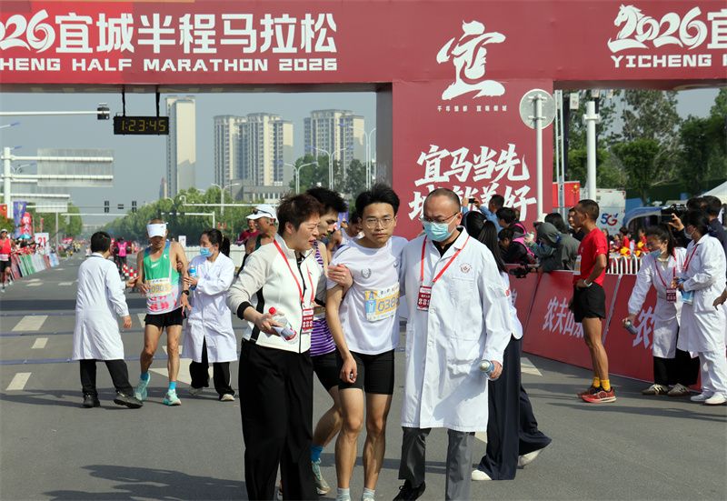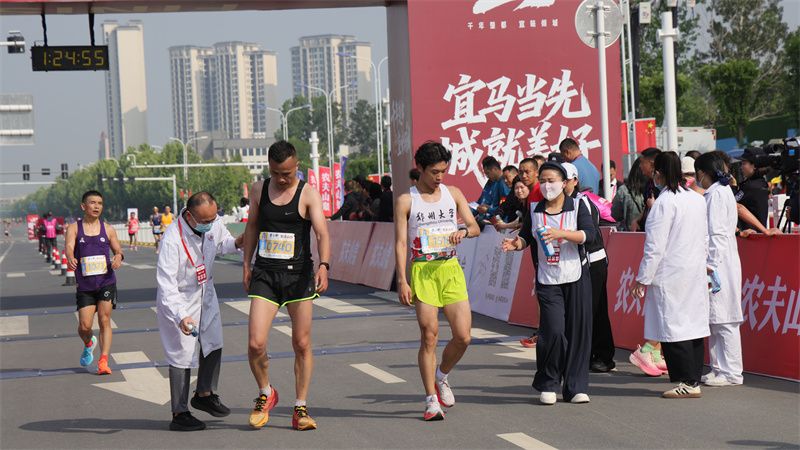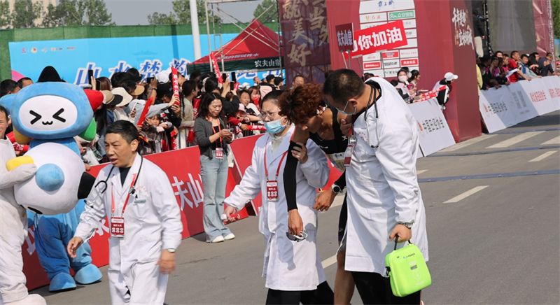 医护人员搀扶完赛选手